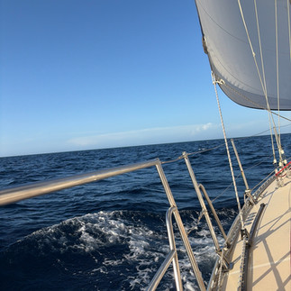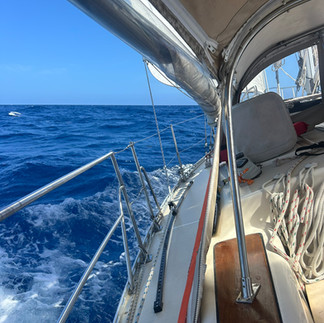 With very good wind conditions we could just sail without worrying about the engine. For several hours we had 15 knots of wind from the beam, so it allowed us good speed. It was a bit bumpy for the first few hours, so we waited until after lunch before we went below to attempt to adjust the alternator belt underway. I had one more trick up my sleeve where I adjusted one of the bolts to pull the alternator and therefore the belt back as far as we could. Once the adjustment was made, we fired up the engine, and it appeared to be okay.
